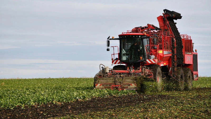 Уборочная площадь сладких корней в участке — 1200 гектаров. Это десять полей, половина из которых расположена по направлению к селу Флюговка. Здесь как раз и кипит работа. По краям убранных плантаций вытянулись свекольные бурты. Отсюда корнеплоды грузятся на КамАЗы и отправляются на свеклоприёмный пункт. Машин много, поэтому водители успевают сделать по одному-два рейса. На копке задействованы три мощных комбайна «Холмер», которыми управляют опытные механизаторы. При хорошем раскладе они успевают выкопать свёклу за день примерно на 60 гектарах. На момент моего приезда на поле вся техника работала без остановки. Свеклоуборочная машина под управлением Юрия Чеканова с полным бункером направляется на выгрузку корнеплодов. Пять минут — и они увеличивают кагат на 30 тонн.