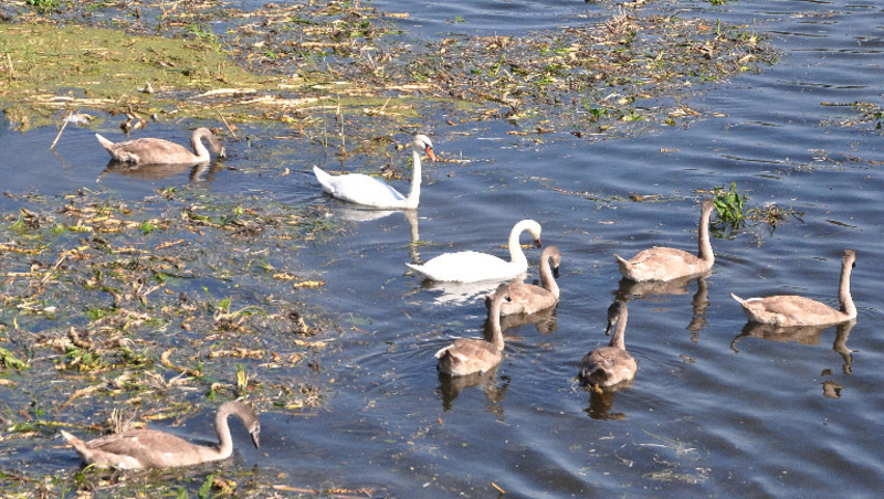 Как бы там ни было, а у алексеевцев — особый интерес к живущим в наших местах красивым птицам. Поговаривают, что пара, которая вывела семерых лебёдышей в этом году на небольших островках суши справа от плотины, подальше от людей, — родители птенца, который прошлой зимой жил на реке самостоятельно, а затем куда-то пропал. Сменил ли он место обитания или же пострадал от рук человека или животного — неизвестно. А недавно моя мама встретила на мосту женщину, которая ей рассказала, что этой весной на самом деле вывелось девять лебёдышей, но правда это или нет, узнать не получилось.