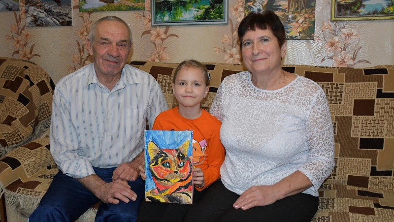 Сейчас с пенсионерами живёт внучка Алиса, которая ходит в первый класс. Родители привезли её из Белгорода подальше от известных всем событий. Девочке нравится с дедушкой и бабушкой. Они научили её рыбачить, помогают освоить рисование. Главное всё это Алиса делает с увлечением.