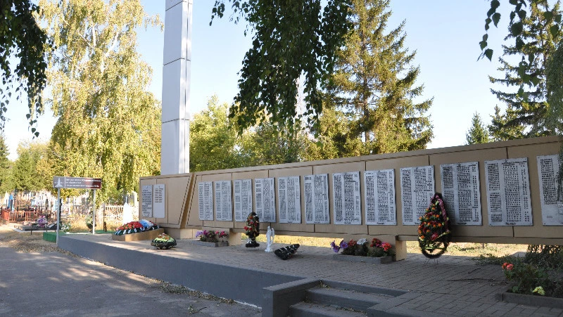 На Дмитриевском кладбище установлена остроконечная четырёхгранная стела, увенчанная красной звездой. У основания с трёх сторон размещены мемориальные плиты с именами 36 воинов, всего же в братской могиле преданы земле 42 человека. Одни из них погибли в июле 1942 года, другие во время боёв за Алексеевку в январе 1943 года. Мемориал сооружён к 9 мая 1996 года.