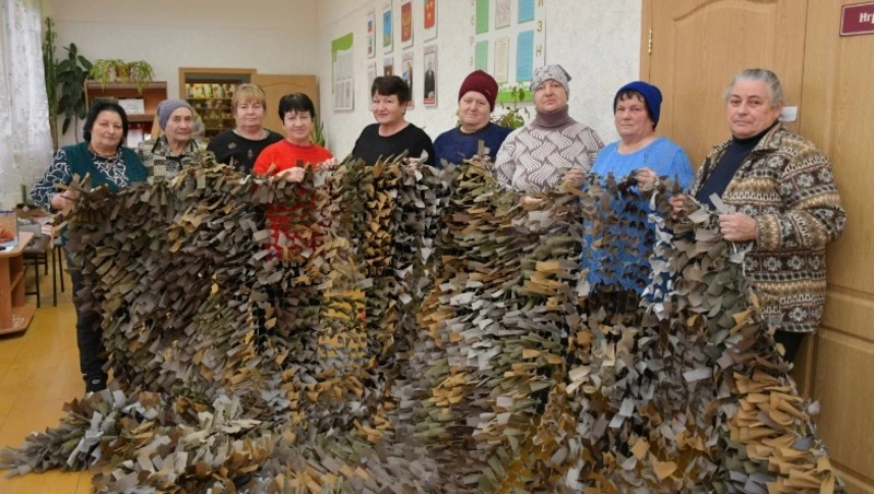 — Примерно на два, — одновременно откликнулись собеседницы, которые тем временем уже сворачивали свою 1502-ю маскировочную сеть. И всё, что им нужно сегодня, это материалы, чтобы продолжить творить добро в две смены.
