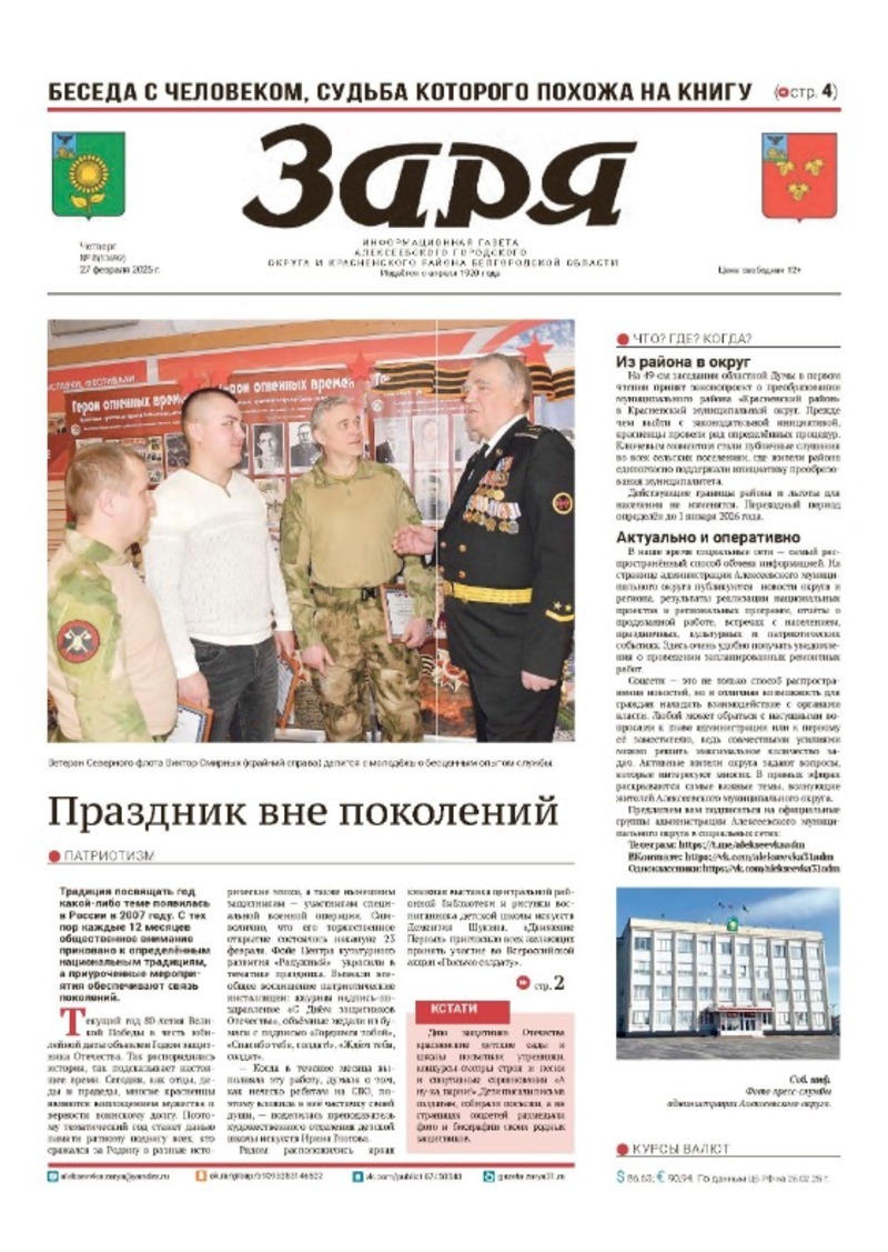 Адрес редакции: 309850, Белгородская обл., г. Алексеевка, ул. Мостовая, 85.