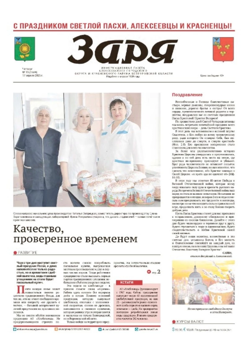 Информационная газета Алексеевского муниципального округа и Красненского района.