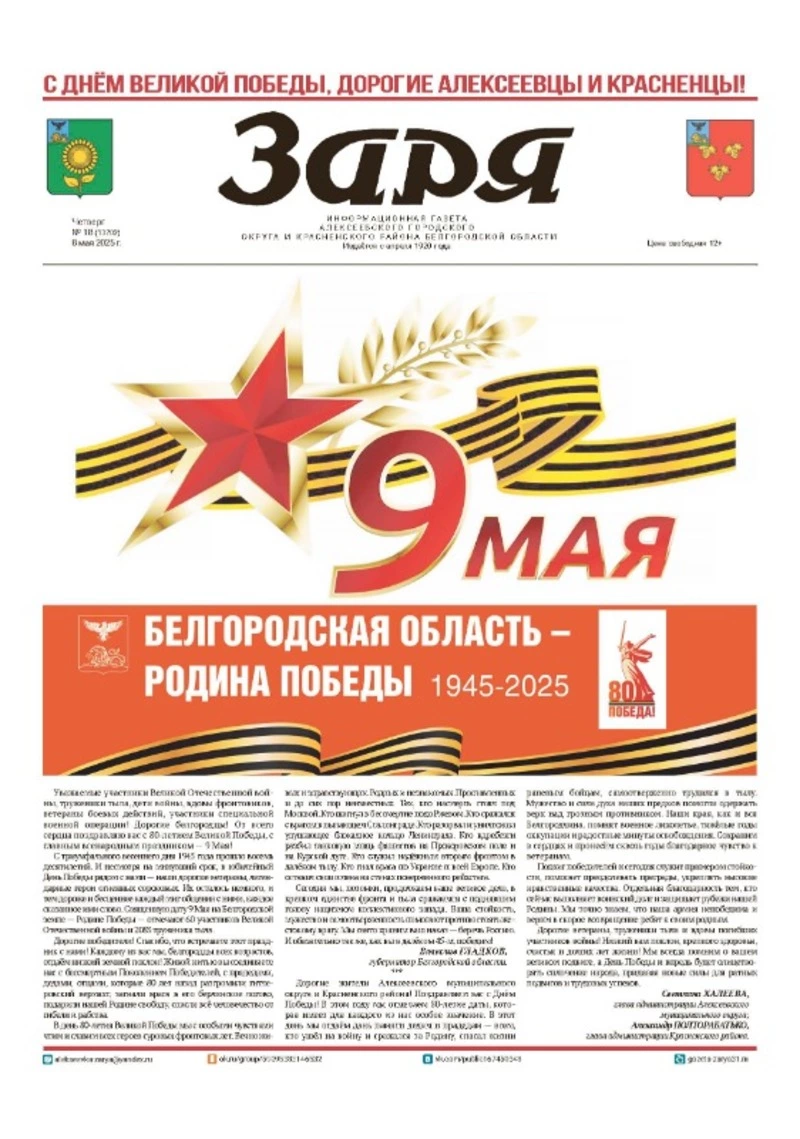 Информационная газета Алексеевского муниципального округа и Красненского района.