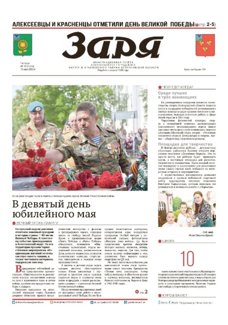 Газета «Заря» №19 от 15 мая 2025 года