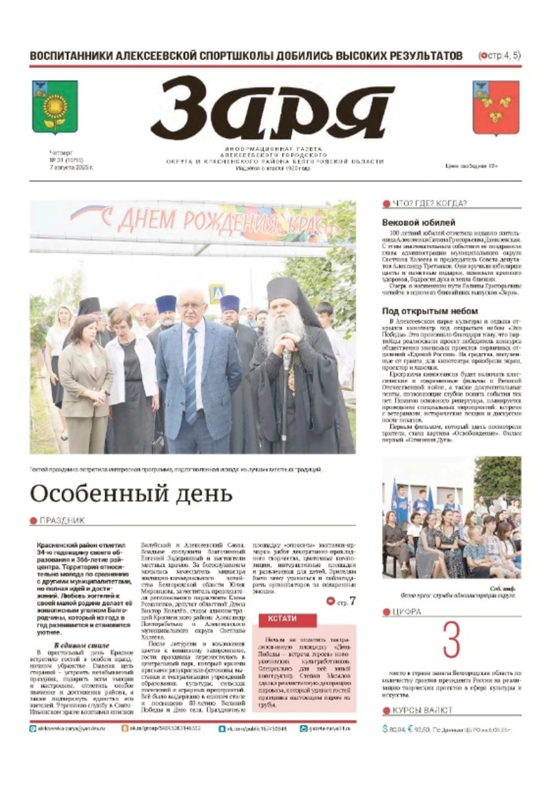 Газета «Заря» №31 от 7 августа 2025 года