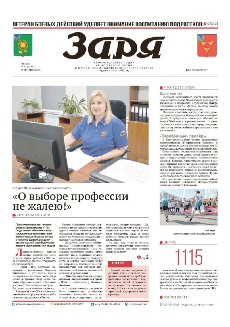 Газета «Заря» №41 от 16 октября 2025 года