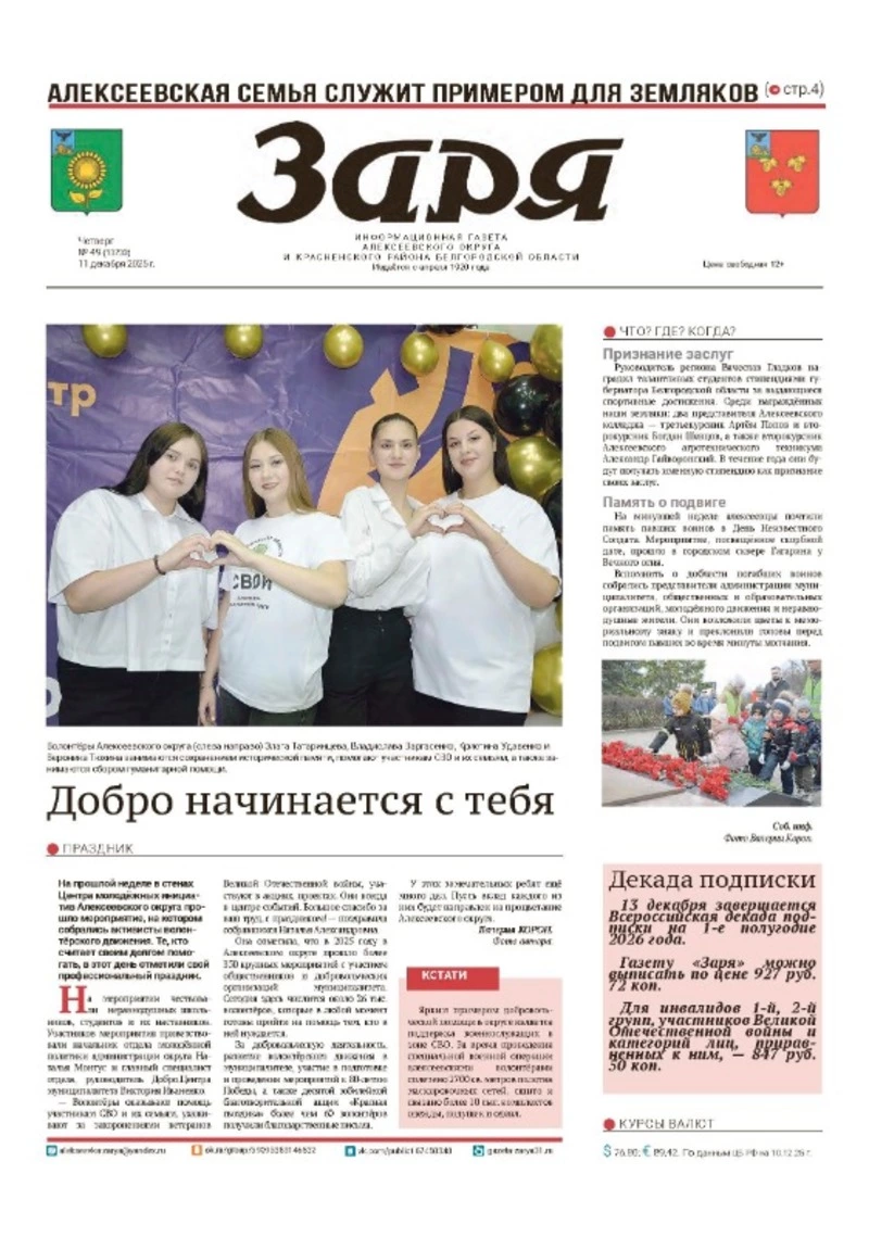 Газета «Заря» №49 от 11 декабря 2025 года