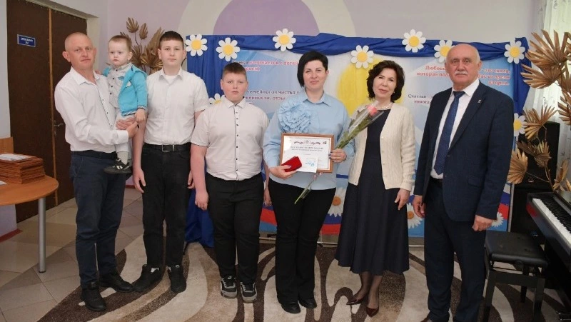 Александр Федорович и зампредседателя Белгородской областной Думы Елена Романенко вручили Почетные знаки «Материнская слава» третьей степени Светлане Веретенниковой и Ларисе Иванниковой. Елена Николаевна поблагодарила каждую семью за воспитание детей в духе патриотизма и сохранение семейных традиций. Она также вручила всем подарочные сертификаты на бытовую технику.