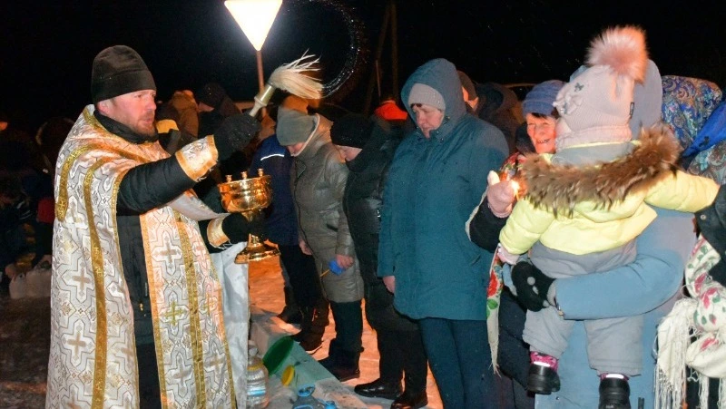Настоятель храма Покрова Пресвятой Богородицы села Сетище, иерей Иоанн, провел торжественный крещенский молебен. Его слова наполняли сердца верой и надеждой, а освященная вода, которой он окропил всех собравшихся, стала символом духовного очищения и благодати.