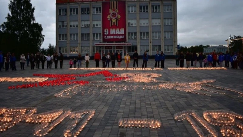 Участники акции «Огненные картины войны» создали из пламени свечей образ легендарного «Сына полка» — как живое напоминание о мужестве и героизме солдат Великой Отечественной войны. В этот же день у городского мемориала солдатской Славы зажгли «Свечи Памяти». Пламя тысячи огней стало символом благодарности подвигу павших советских воинов.